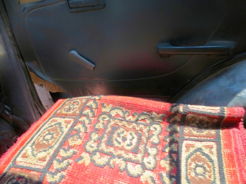 You will mostly likely find yourself sitting on an old, decorated rug in the back seat... with magazine pages pasted onto the door as a covering... and just hoping to yourself that you and the back-end of the car are not left behind when you bounce over a bump (or hole) in the road and hit your head on the roof! It's an experience!